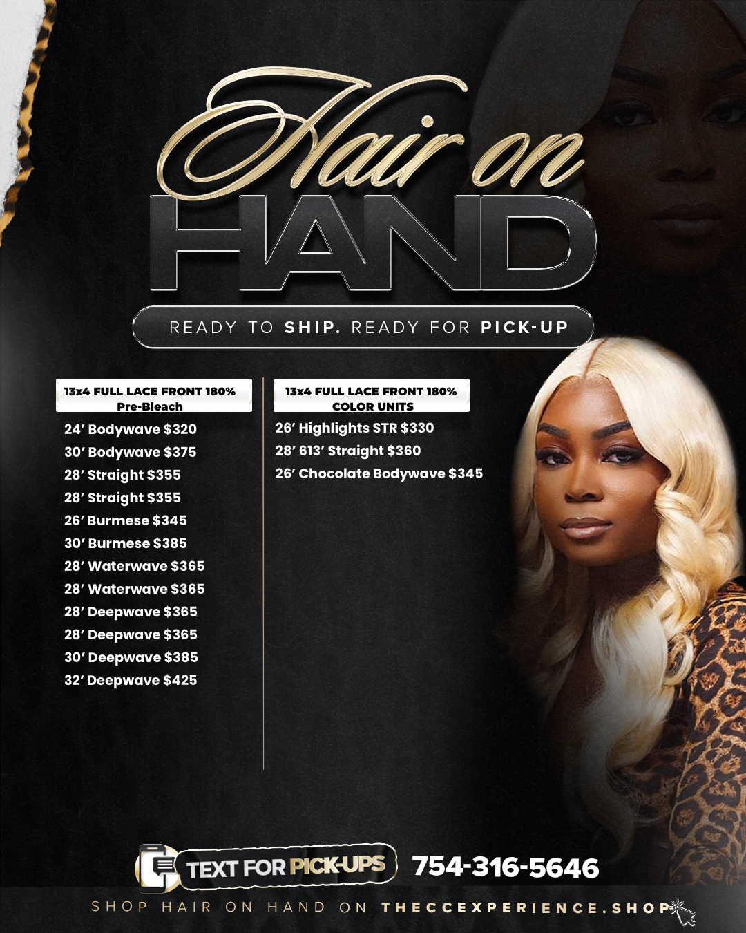 - Text (754) 316 - 5646 to set a pick-up/drop off time and date.